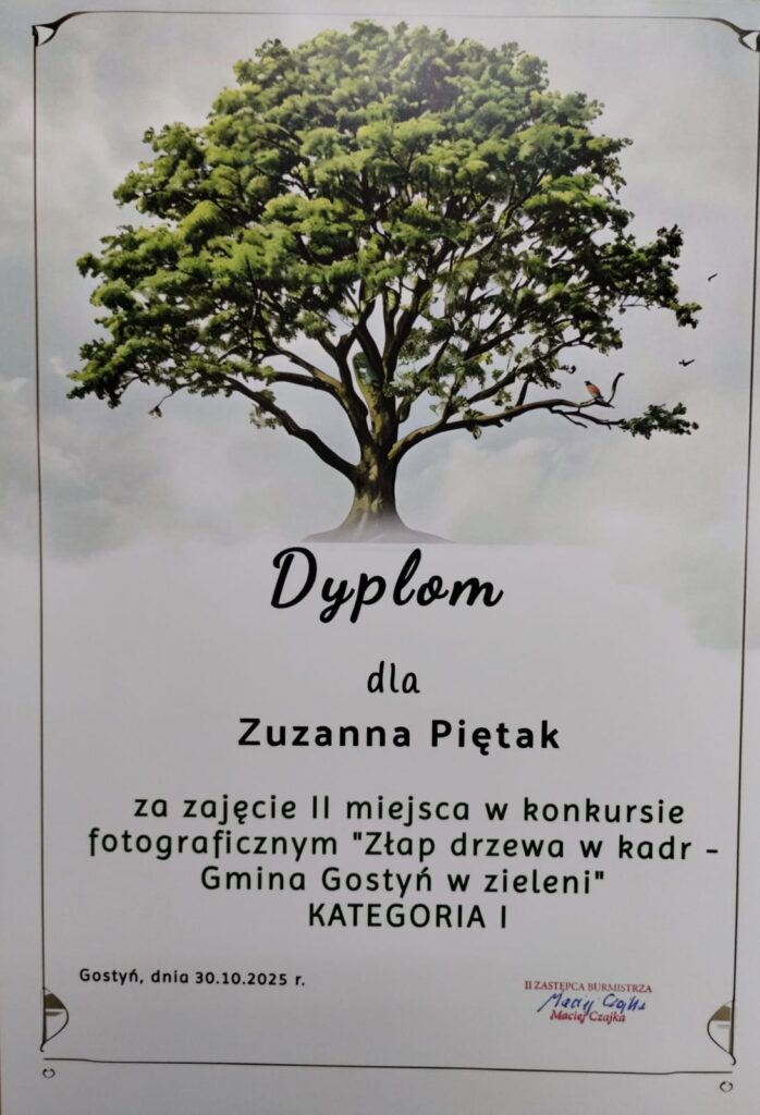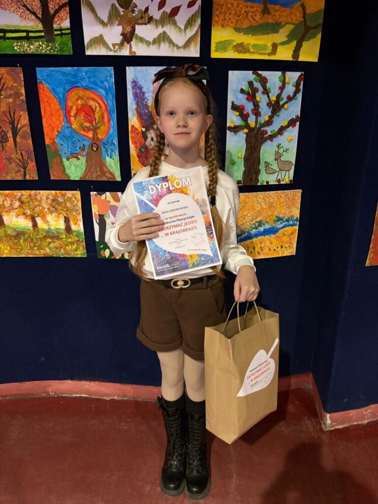 21 listopada 2025 r. nasza uczennica Zosia Grzempowska odebrała nagrodę w Konkursie Plastycznym „Zatrzymać jesień… w krajobrazie”.