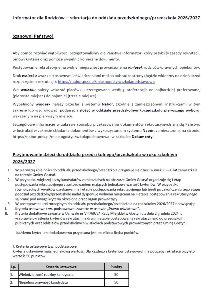 UWAGA ! TRWA NABÓR DO PRZEDSZKOLI DO 29 STYCZNIA 2026 r. !